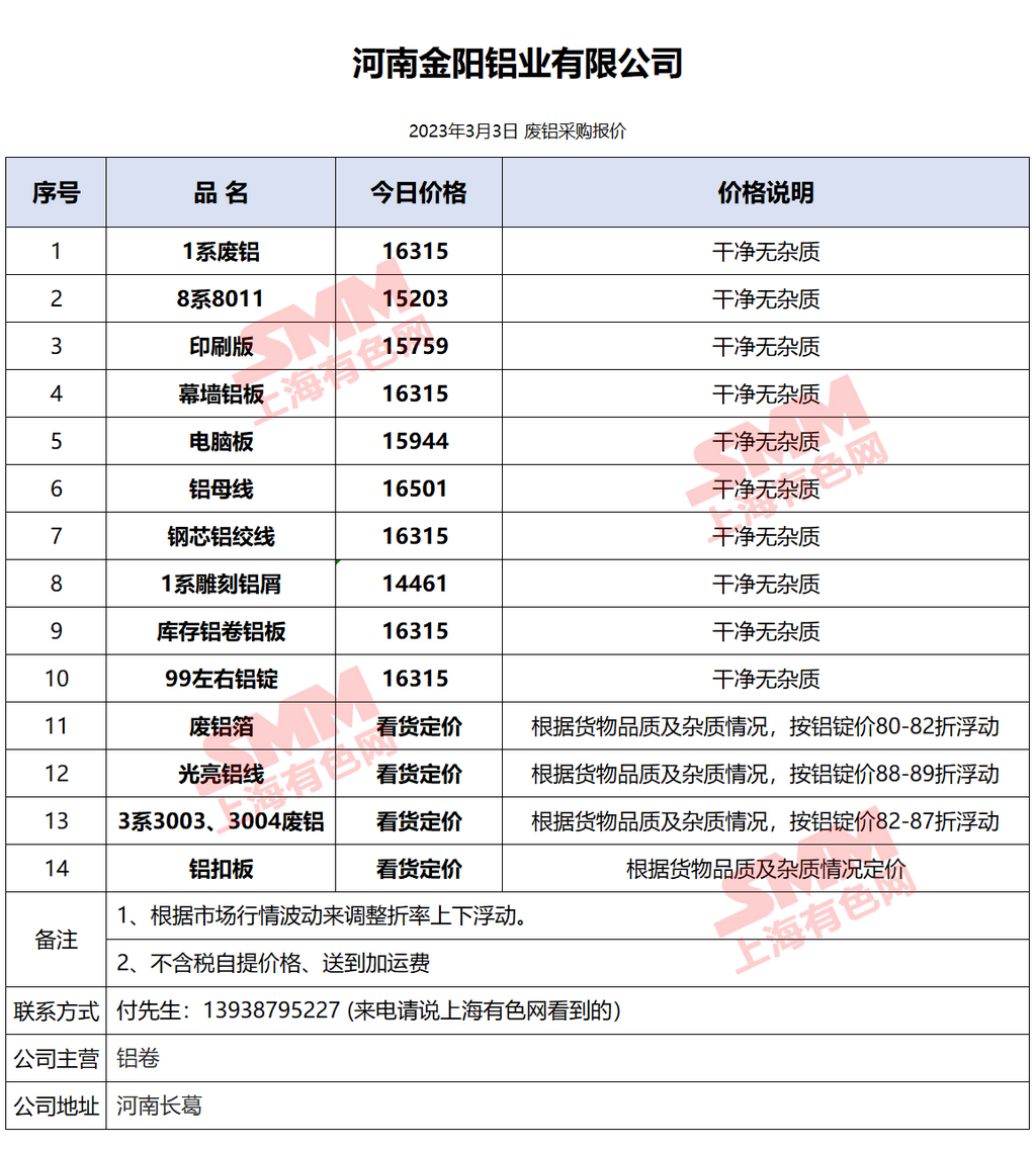 今日河南金阳铝业有限公司 废铝采购报价已更新,有货的朋友欢迎联系我们!