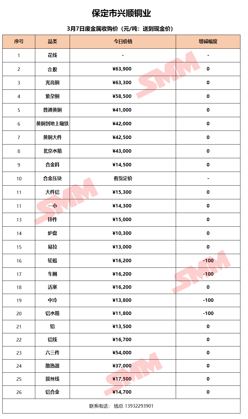 3月7日保定兴顺铜业 废金属收购报价