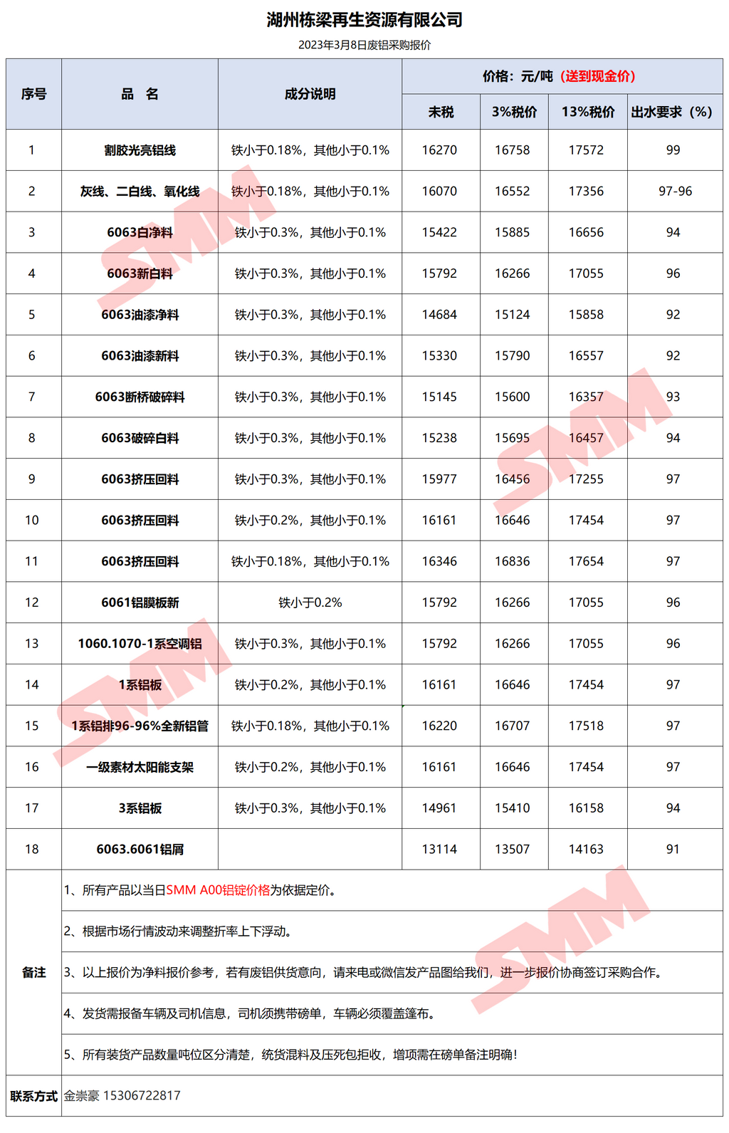 今日湖州栋梁 废铝采购报价已更新,有货的朋友欢迎联系我们!