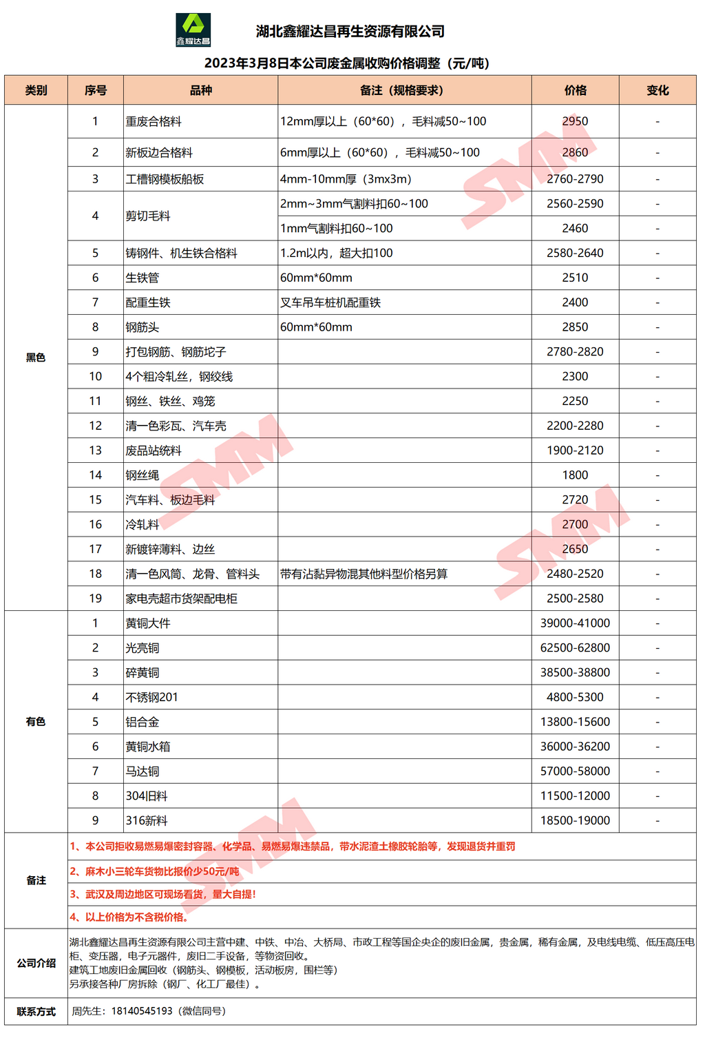 3月8日湖北鑫耀达昌 废金属收购报价