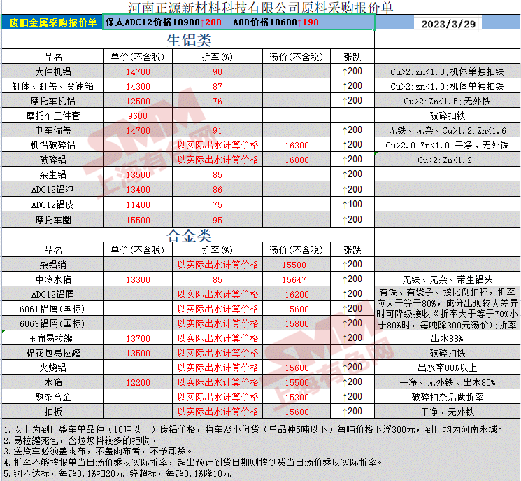 3月29日河南正源 废铝采购报价