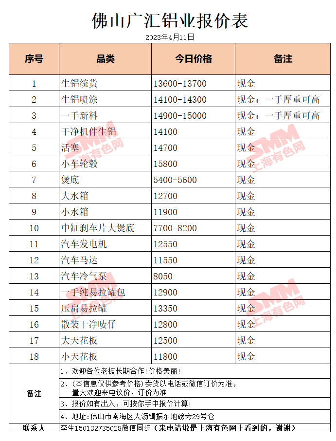 佛山广汇今日主要废铝料收购价目表已更新,有货的朋友欢迎联系我们!
