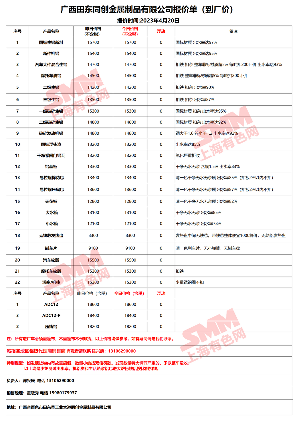 4月20日广西同创 废铝采购报价