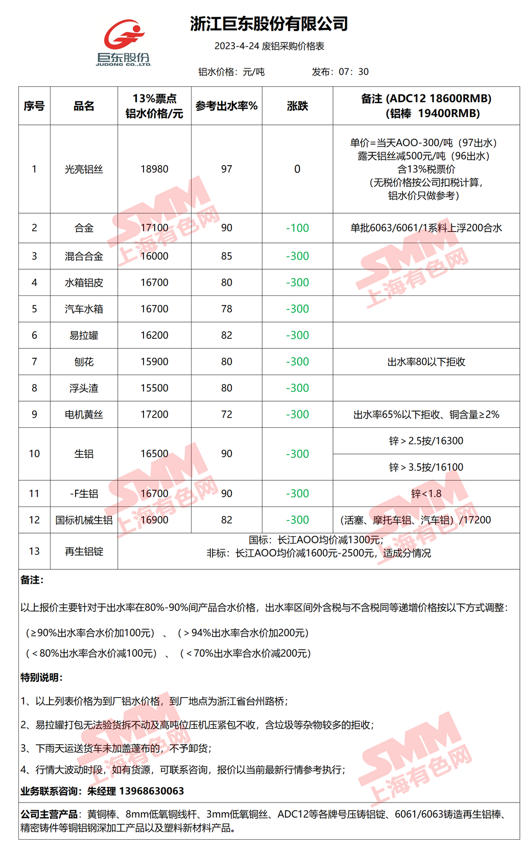 4月24日浙江巨东 废铝采购报价