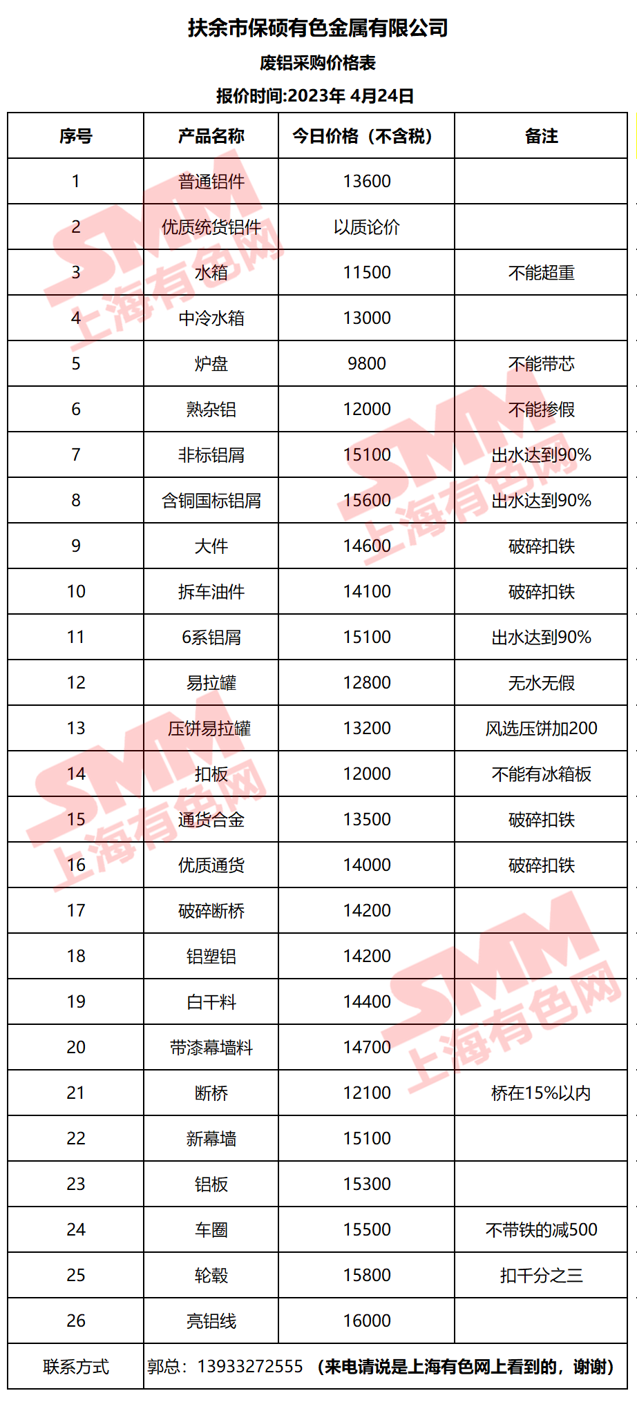 今日扶余市保硕有色金属有限公司 废铝采购报价已更新,有货的朋友欢迎联系我们!