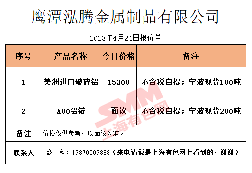 今日鹰潭泓腾,废铝销售报价已更新,有采购需求的朋友,欢迎联系我们!