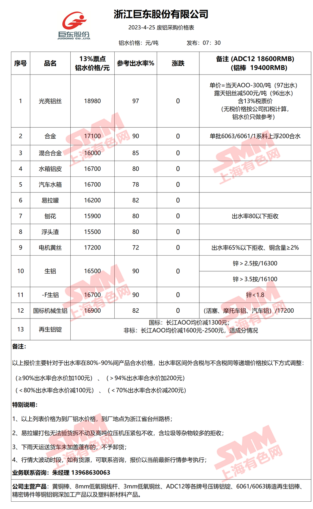 4月25日浙江巨东 废铝采购报价