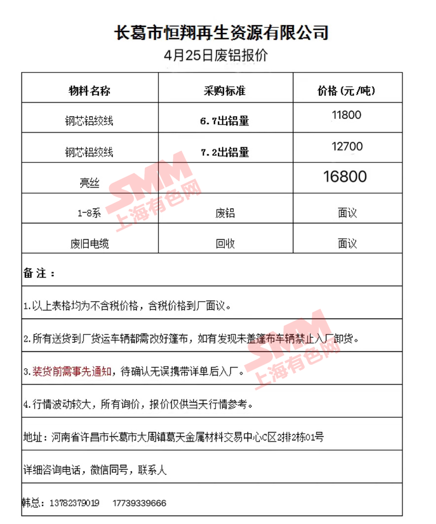 今日长葛恒翔 废铝采购报价已更新,有货的朋友欢迎联系我们!