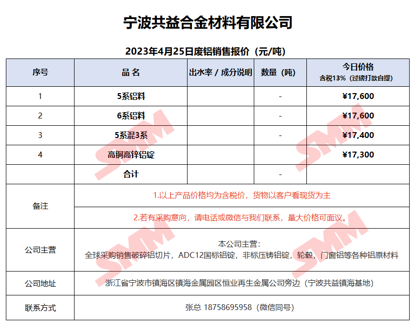 今日宁波共益,废铝销售报价已更新,有采购需求的朋友,欢迎联系我们!