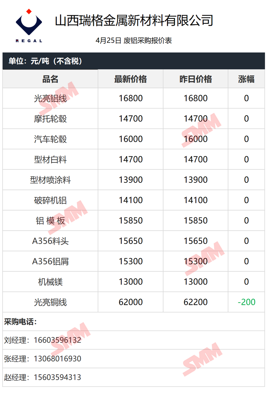 今日山西瑞格金属 废铝采购报价已更新,有货的朋友欢迎联系我们!