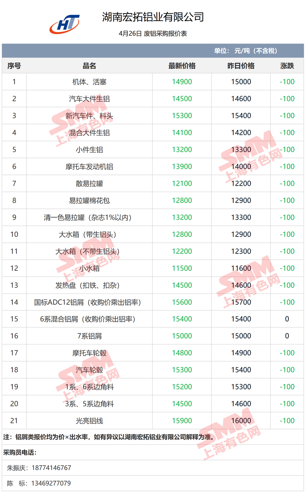 4月26日湖南宏拓铝业 废铝采购报价