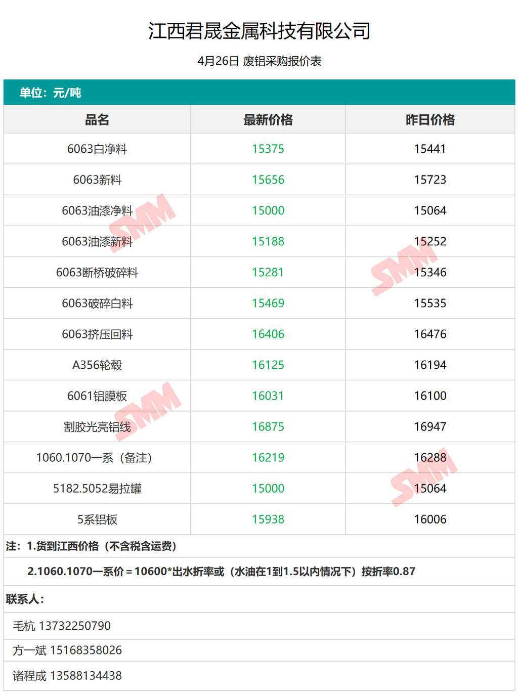 今日江西君晟金属 废铝采购报价已更新,有货的朋友欢迎联系我们!