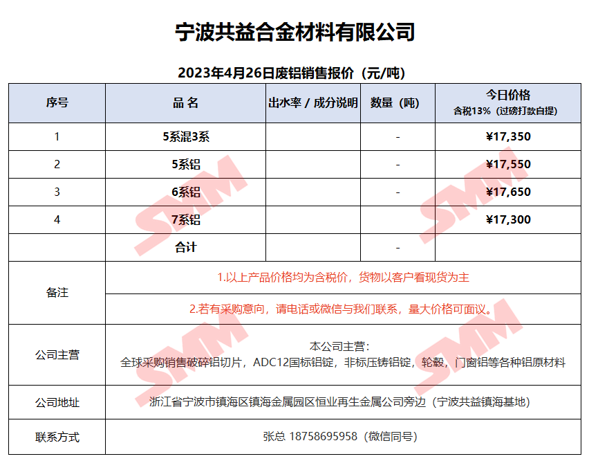 今日宁波共益,废铝销售报价已更新,有采购需求的朋友,欢迎联系我们!