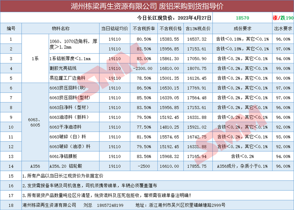 4月27日湖州栋梁再生 废铝采购报价