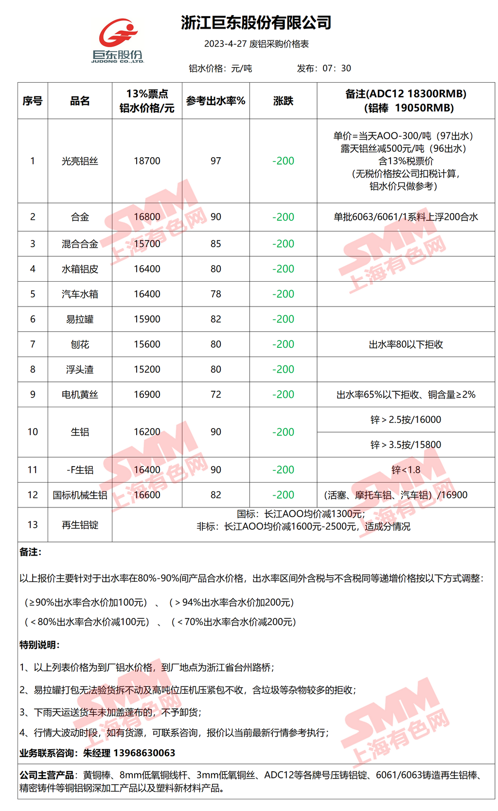 4月27日浙江巨东 废铝采购报价