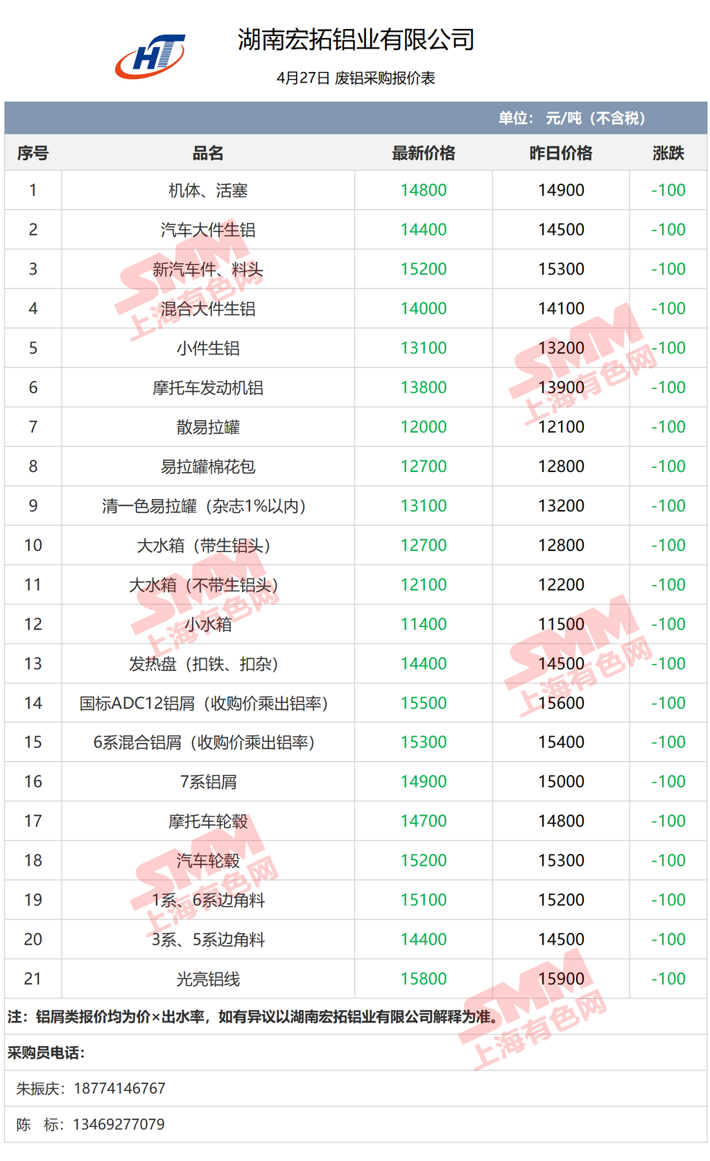 4月27日湖南宏拓铝业 废铝采购报价