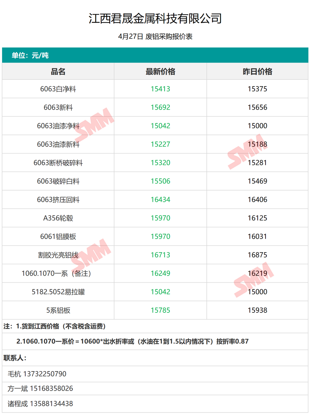 4月27日江西君晟金属 废铝采购报价