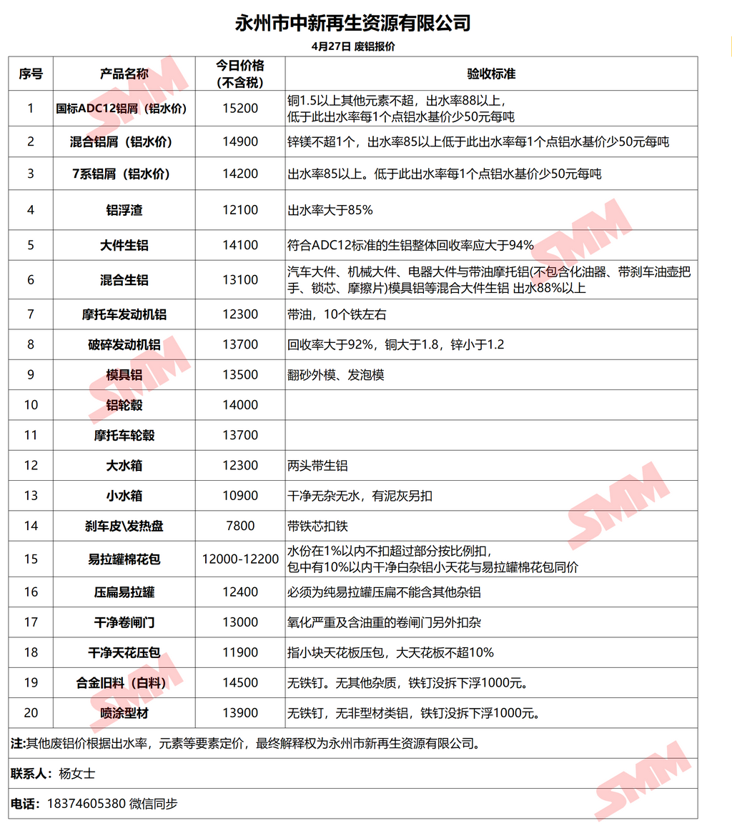 今日永州市中新再生资源有限公司 废铝采购报价已更新,有货的朋友欢迎联系我们!