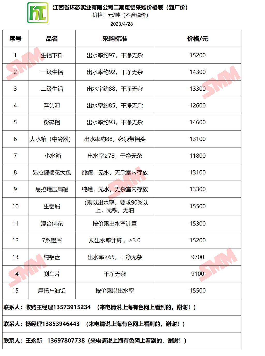 再生金属企业报价合作需求,欢迎联系:13585952056 王