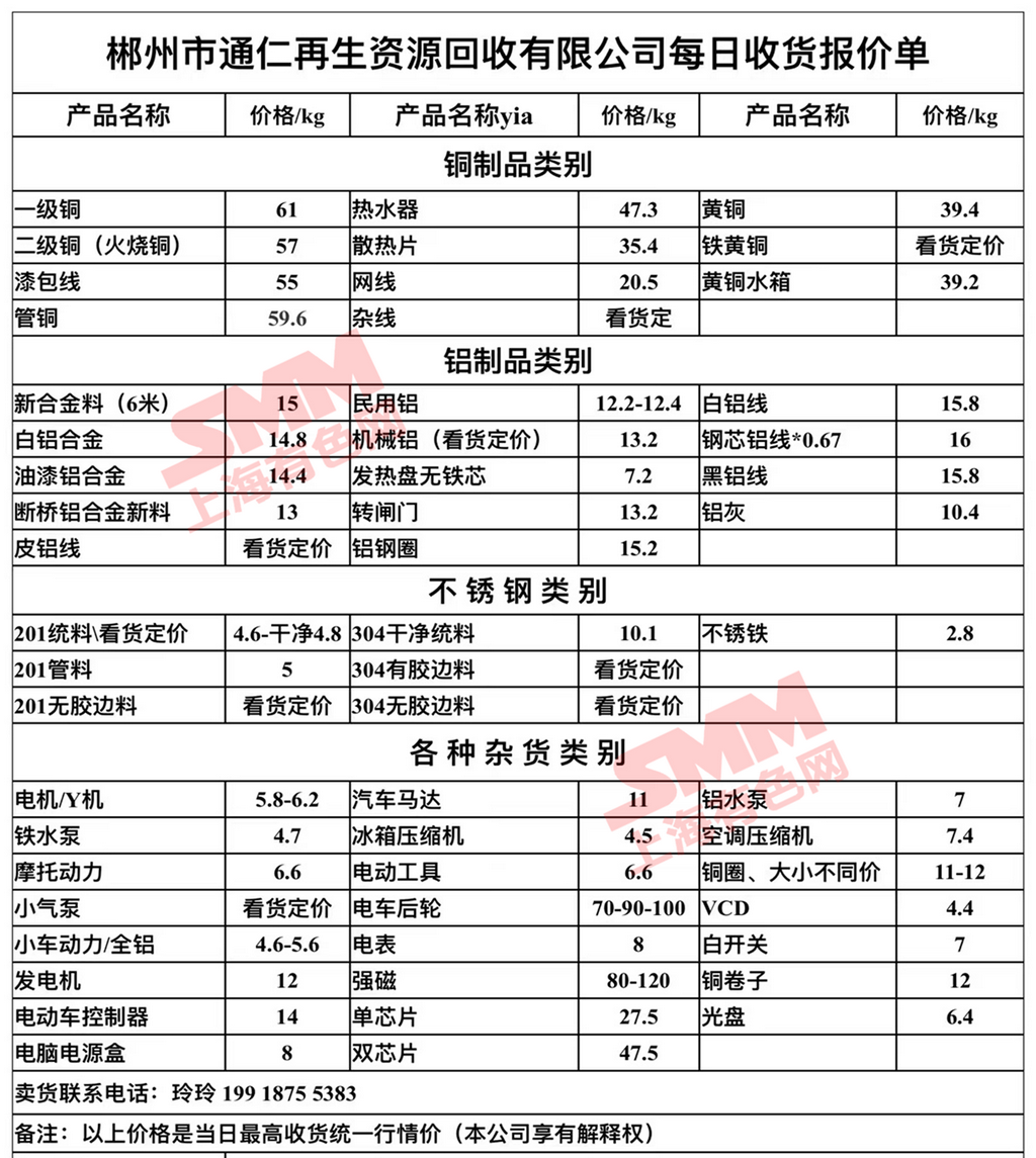 今日郴州市通仁再生资源回收有限公司 废铝收购报价已更新,有货的朋友欢迎联系我们!