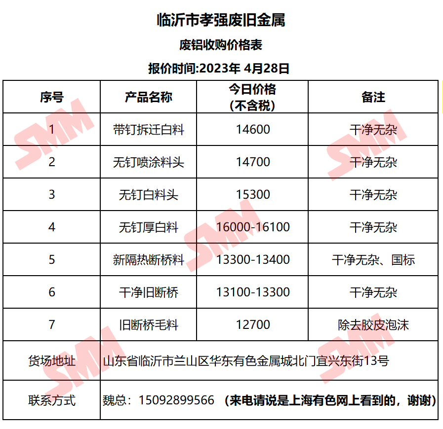 4月28日临沂孝强 废铝收购报价