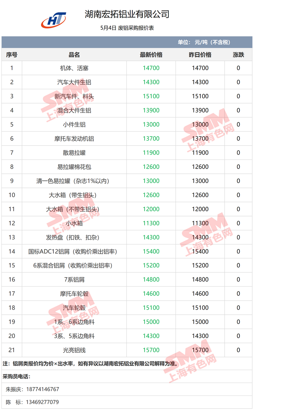 5月4日湖南宏拓铝业 废铝采购报价