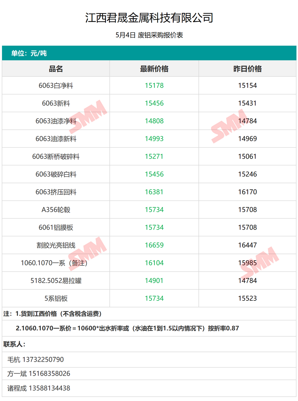 今日江西君晟金属 废铝采购报价已更新,有货的朋友欢迎联系我们!