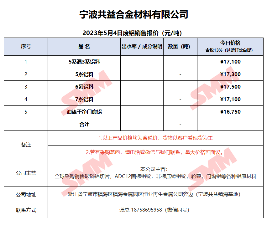 今日宁波共益,废铝销售报价已更新,有采购需求的朋友,欢迎联系我们!
