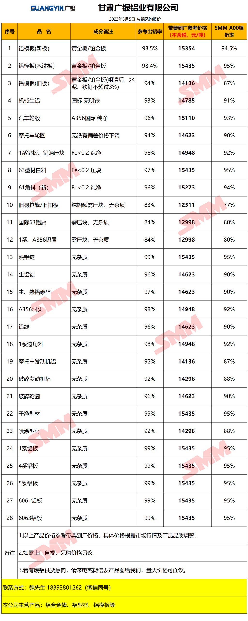 5月5日甘肃广银铝业 废铝采购报价