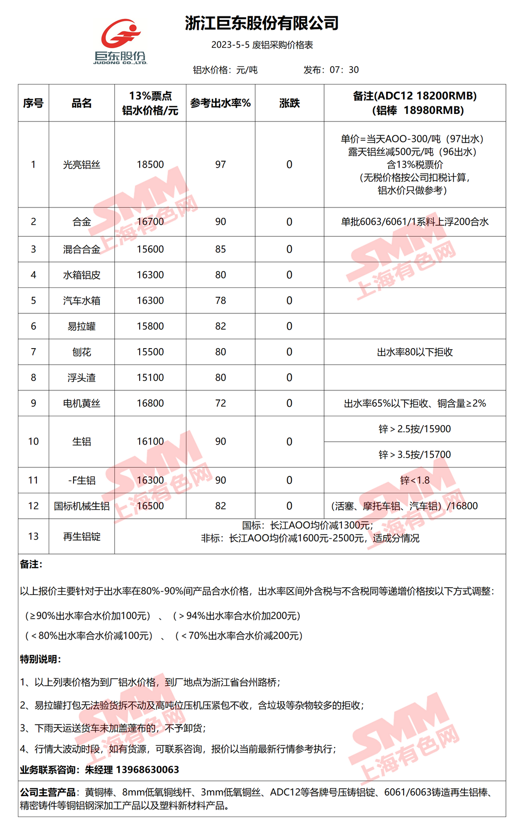 5月5日浙江巨东 废铝采购报价