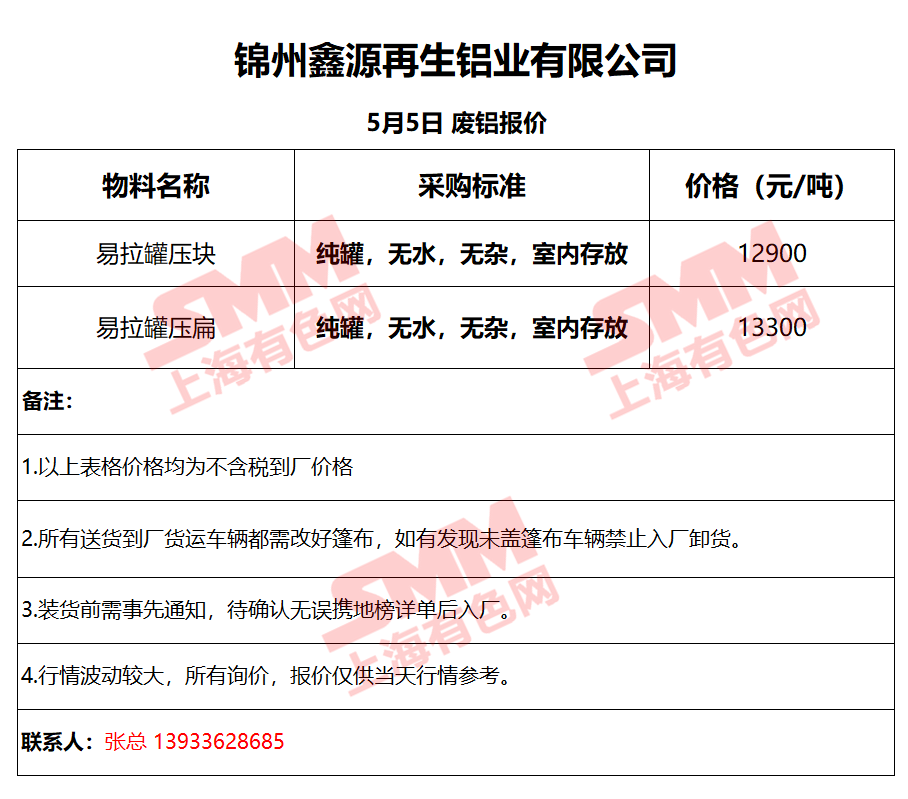今日锦州鑫源再生铝业有限公司 废铝采购报价已更新,有货的朋友欢迎联系我们!