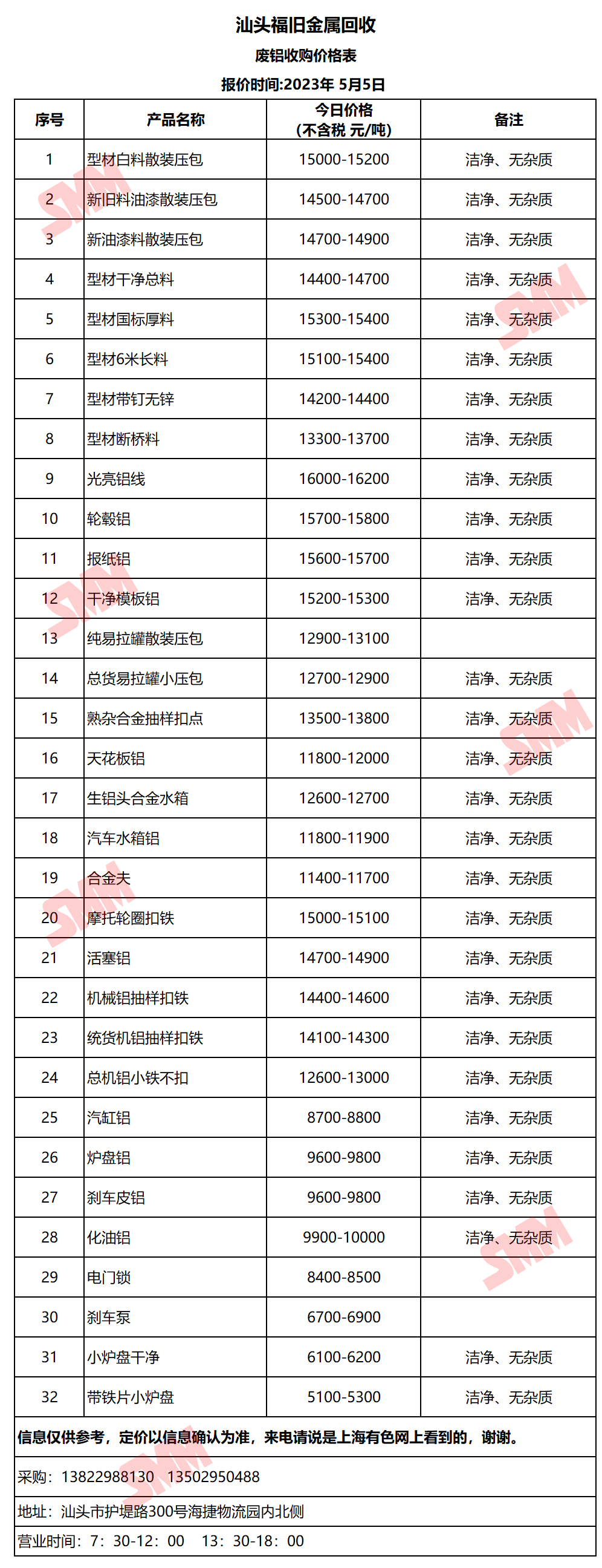 5月5日汕头福旧 废铝收购报价