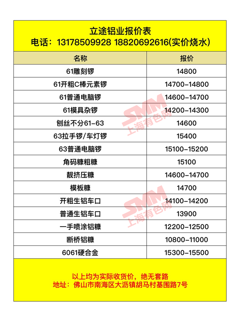 佛山立途铝业有限公司 今日废铝采购报价已更新,有货的欢迎来电咨询。