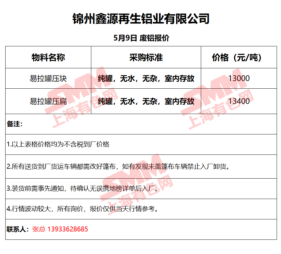 5月9日鑫源再生 废铝采购报价