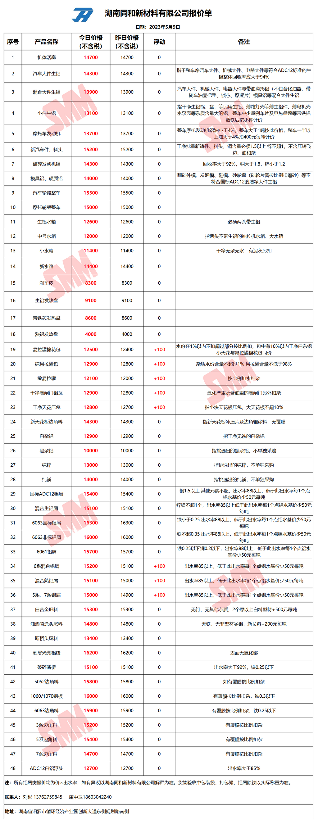 今日湖南同和 废铝采购报价已更新,有货的朋友欢迎联系我们!