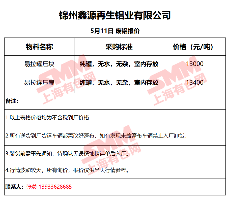 今日锦州鑫源再生铝业有限公司 废铝采购报价已更新,有货的朋友欢迎联系我们!