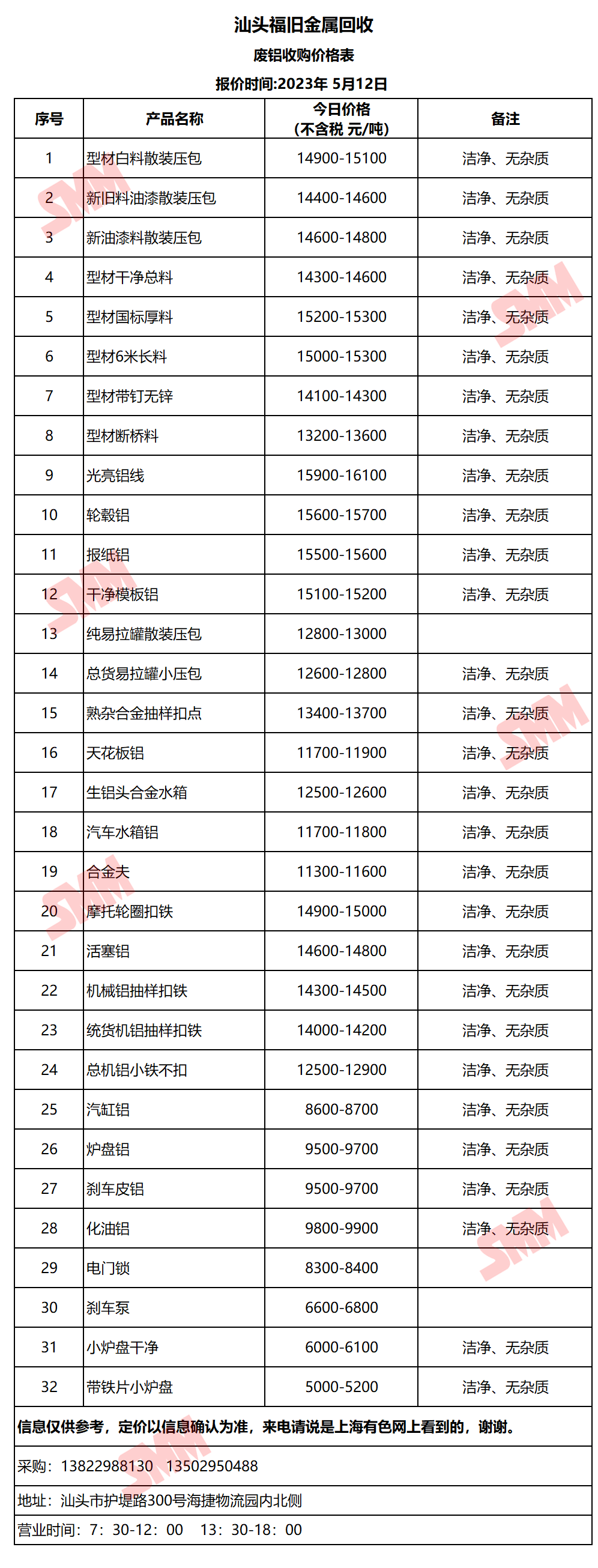 今日汕头福旧金属回收 废铝收购报价已更新,有货的朋友欢迎联系我们!