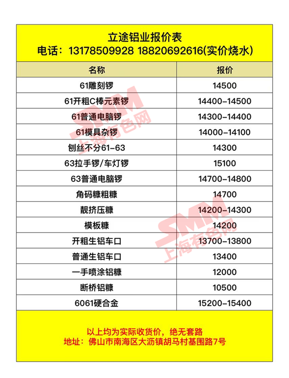 佛山立途铝业有限公司 今日废铝采购报价已更新,有货的欢迎来电咨询。