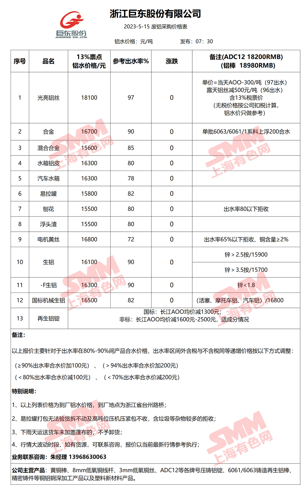 5月15日浙江巨东 废铝采购报价