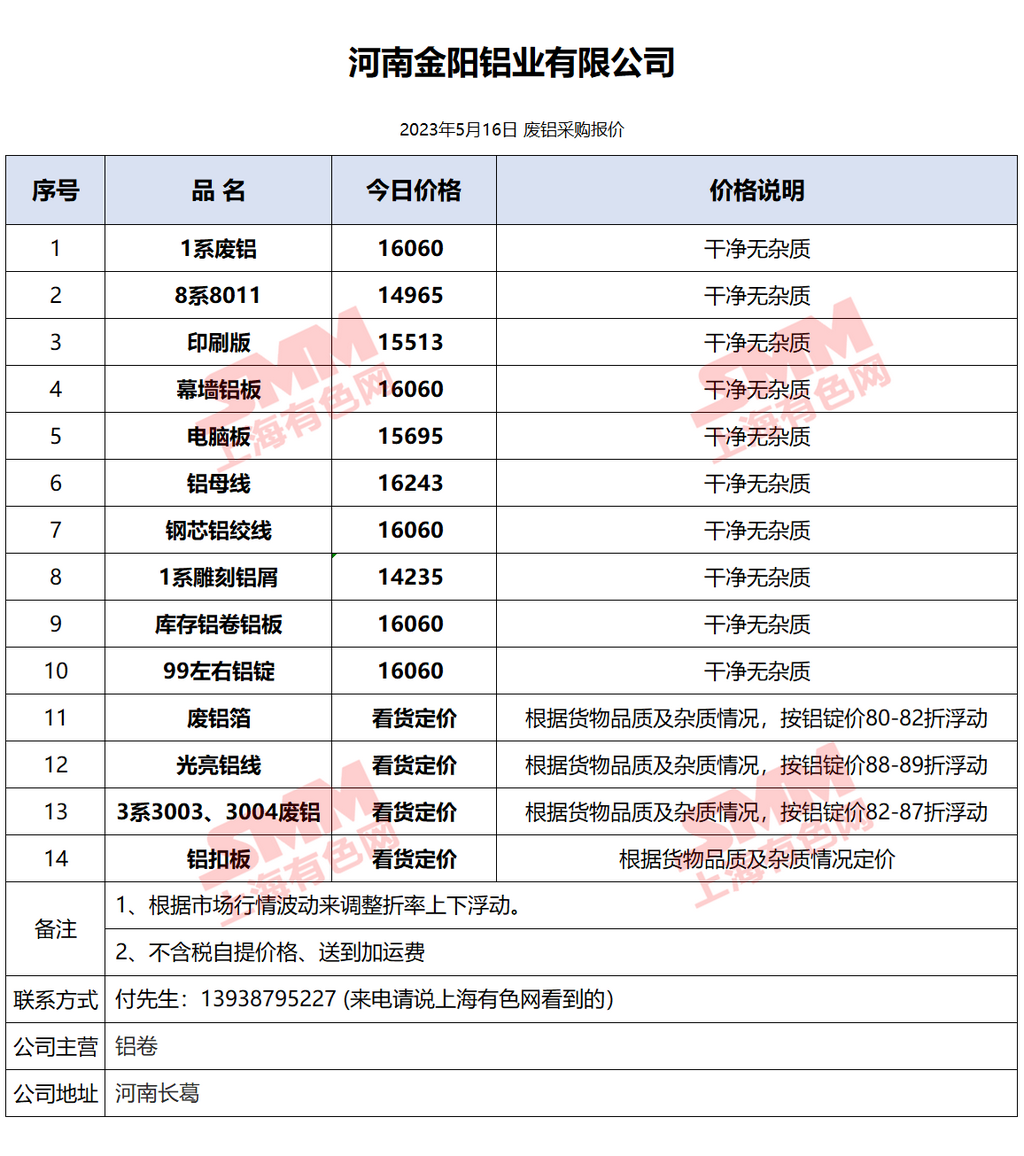 今日河南金阳铝业有限公司 废铝采购报价已更新,有货的朋友欢迎联系我们!