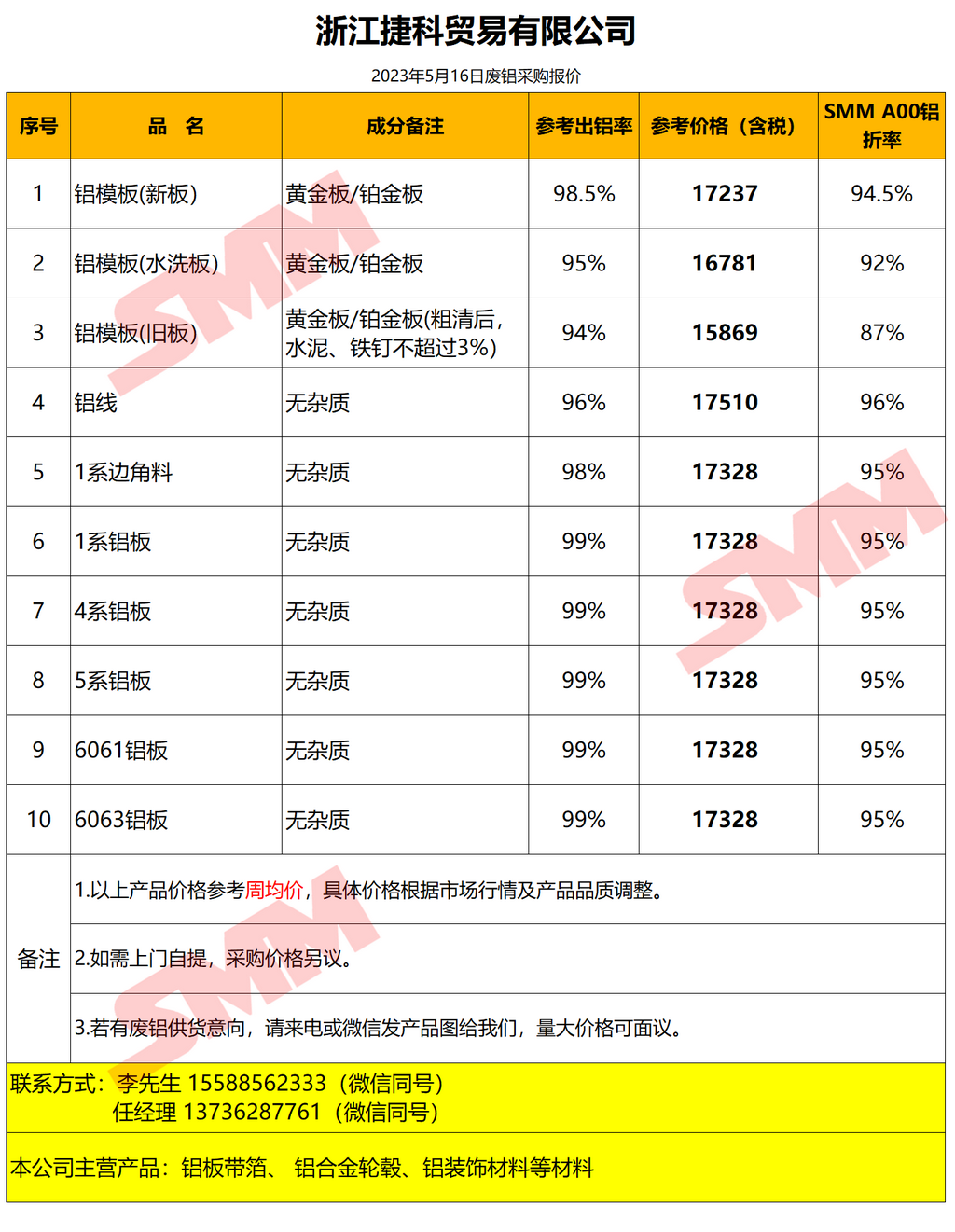 今日捷科贸易 废铝采购报价已更新,有货的朋友欢迎联系我们!