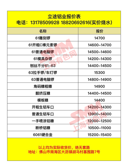 佛山立途铝业有限公司 今日废铝采购报价已更新,有货的欢迎来电咨询。