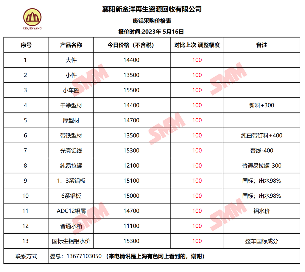 5月16日襄阳新金洋 废铝采购报价