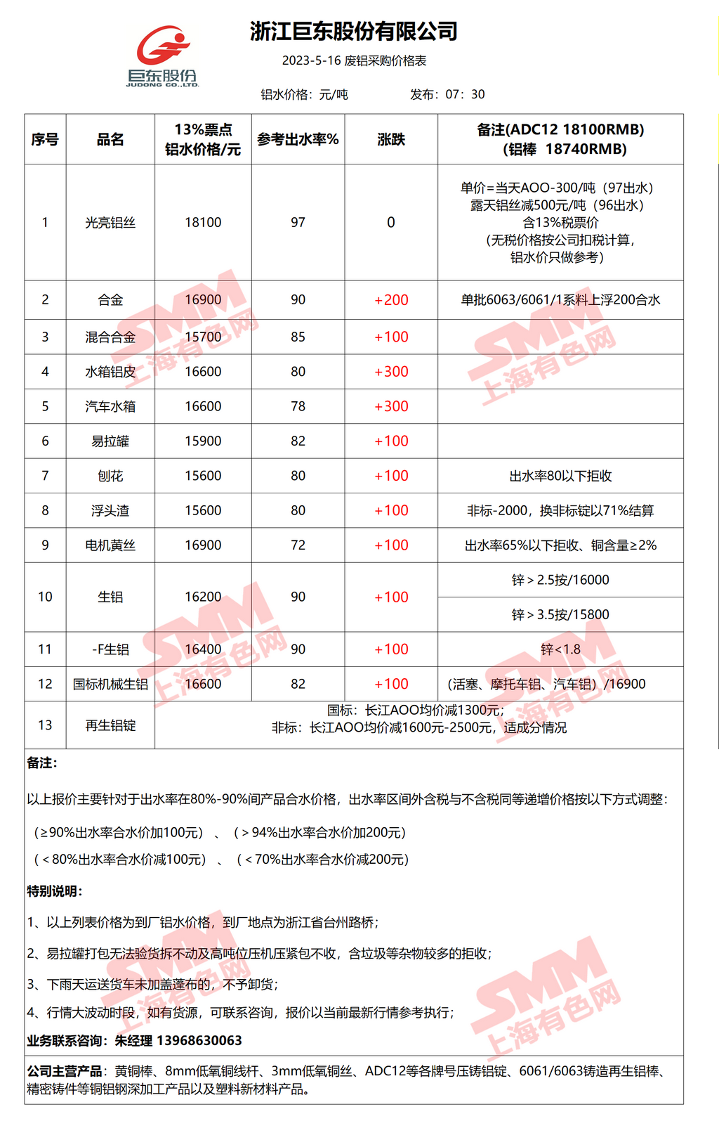 今日浙江巨东 废铝采购报价已更新,有货的朋友欢迎联系我们!