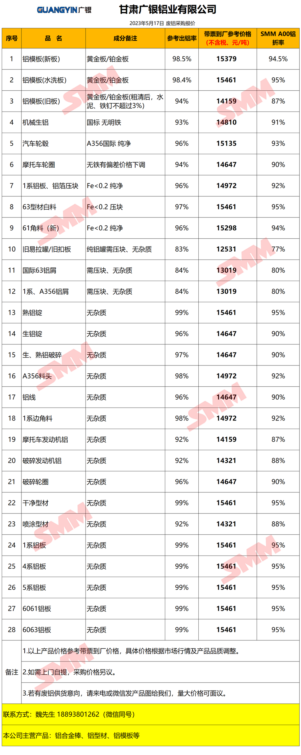 今日甘肃广银铝业 废铝采购报价已更新,有货的朋友欢迎联系我们!
