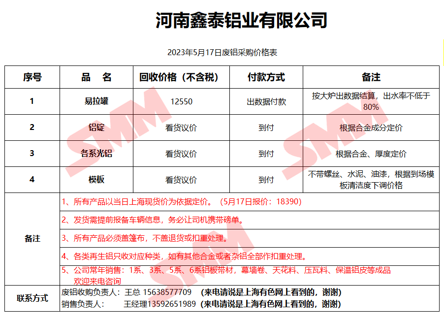 今日河南鑫泰铝业 废铝采购报价已更新,有货的朋友欢迎联系我们!