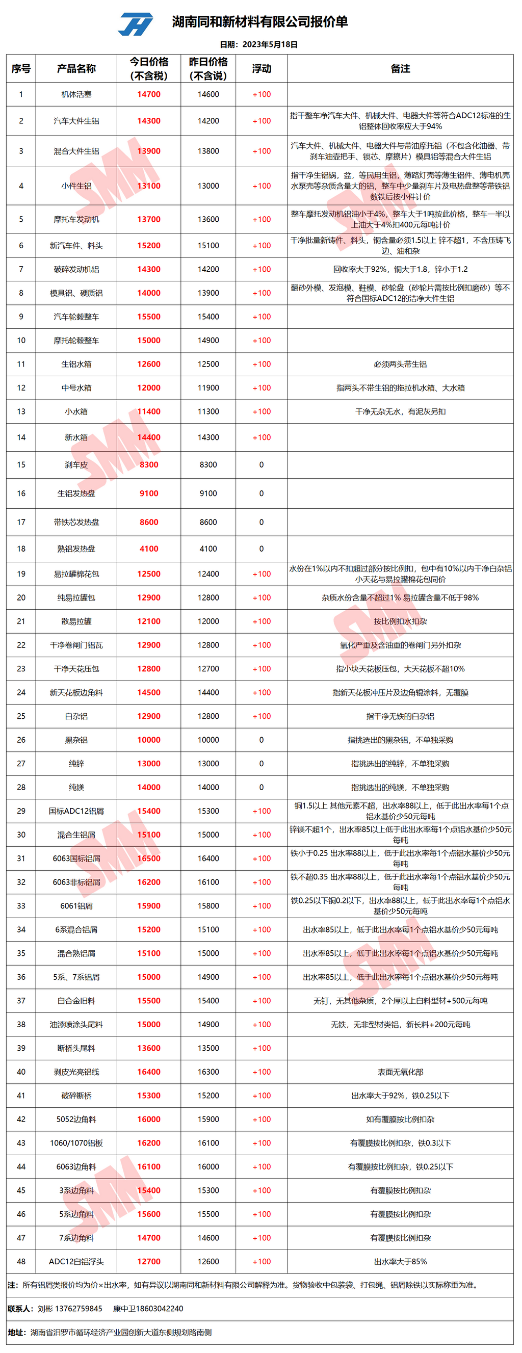 今日湖南同和 废铝采购报价已更新,有货的朋友欢迎联系我们!