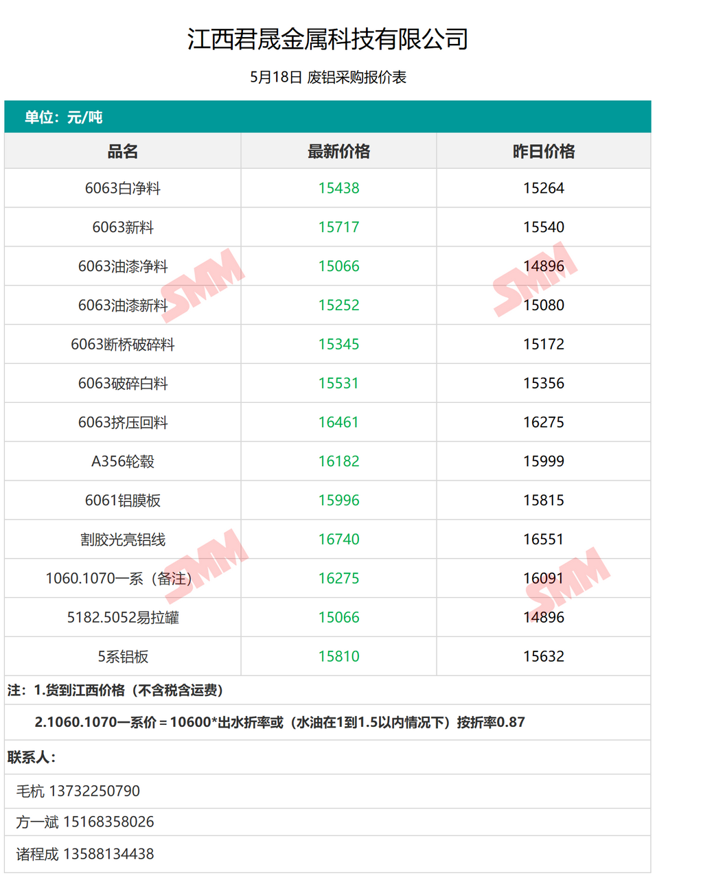 5月18日江西君晟金属 废铝采购报价