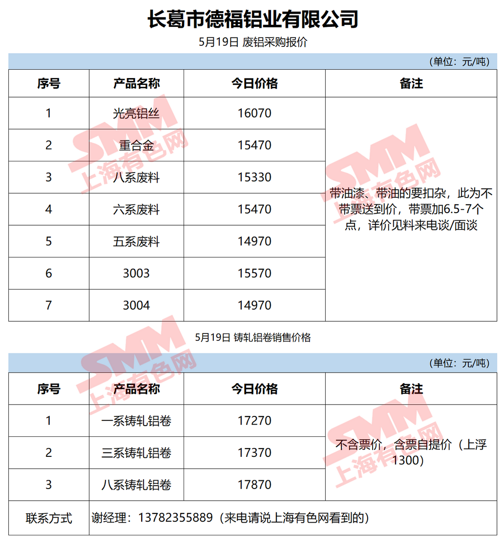 今日长葛德福铝业 废铝采购报价已更新,有货的朋友欢迎联系我们!