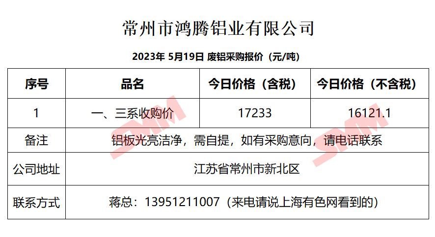 今日常州市鸿腾铝业有限公司 废铝采购报价已更新,有货的朋友欢迎联系我们!